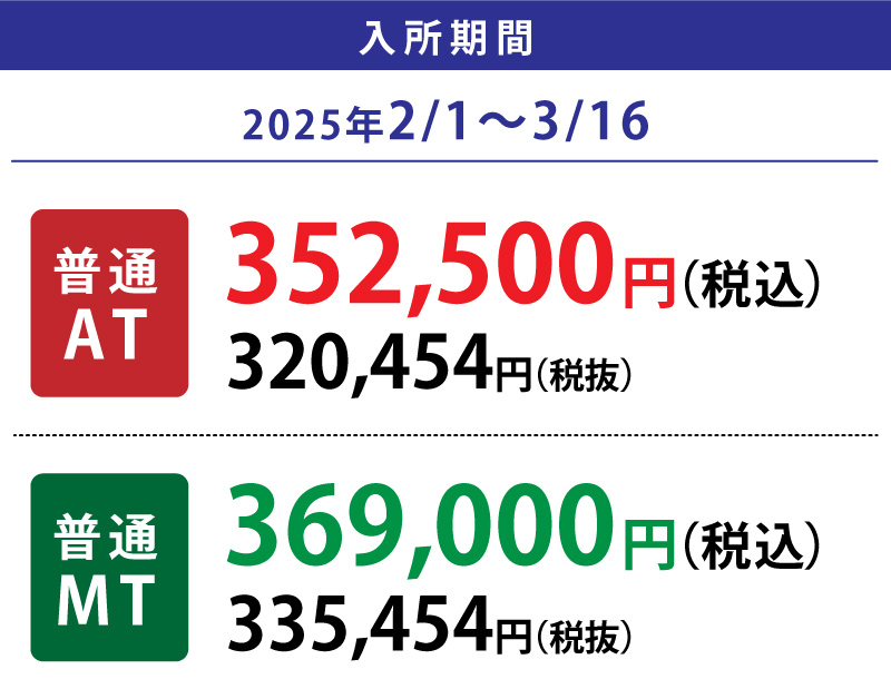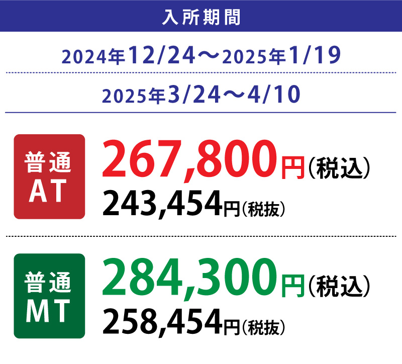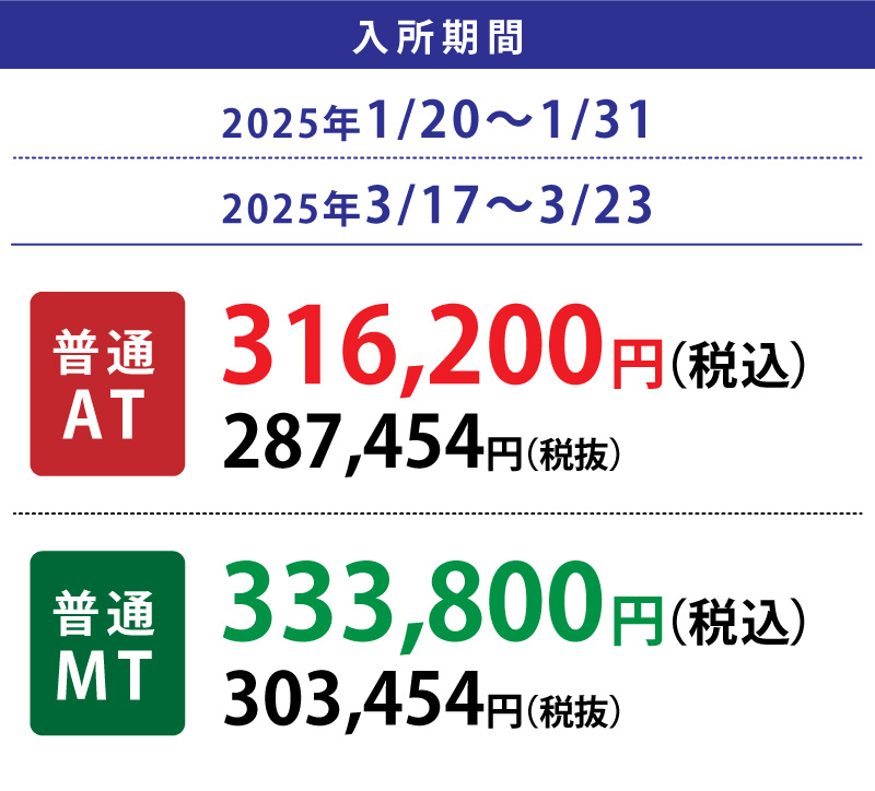 ※上記は、免許をお持ちでない方と原付免許をお持ちの方の価格です。